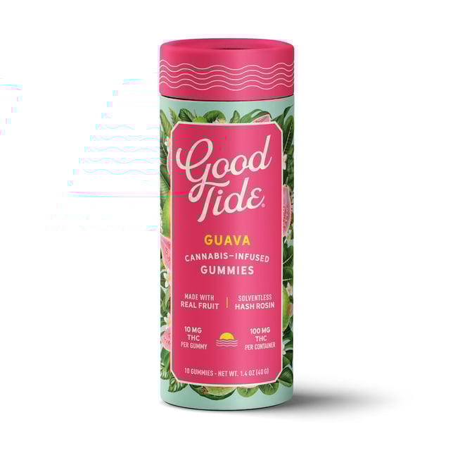 Take a tropical plunge with Good Tide guava gummies. Infused with rosin extracted from hybrid cannabis strains, these guava gummies offer a balanced high with true-to-plant properties. The naturally occurring terpenes and minor cannabinoids present in the solventless hash rosin combine with the real-fruit guava ingredients to create a deliciously rounded