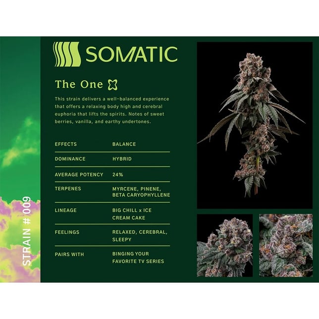 This strain delivers a well-balanced experience that offers a relaxing body high and cerebral euphoria that lifts the spirits. Notes of sweet berries, vanilla, and earthy undertones.